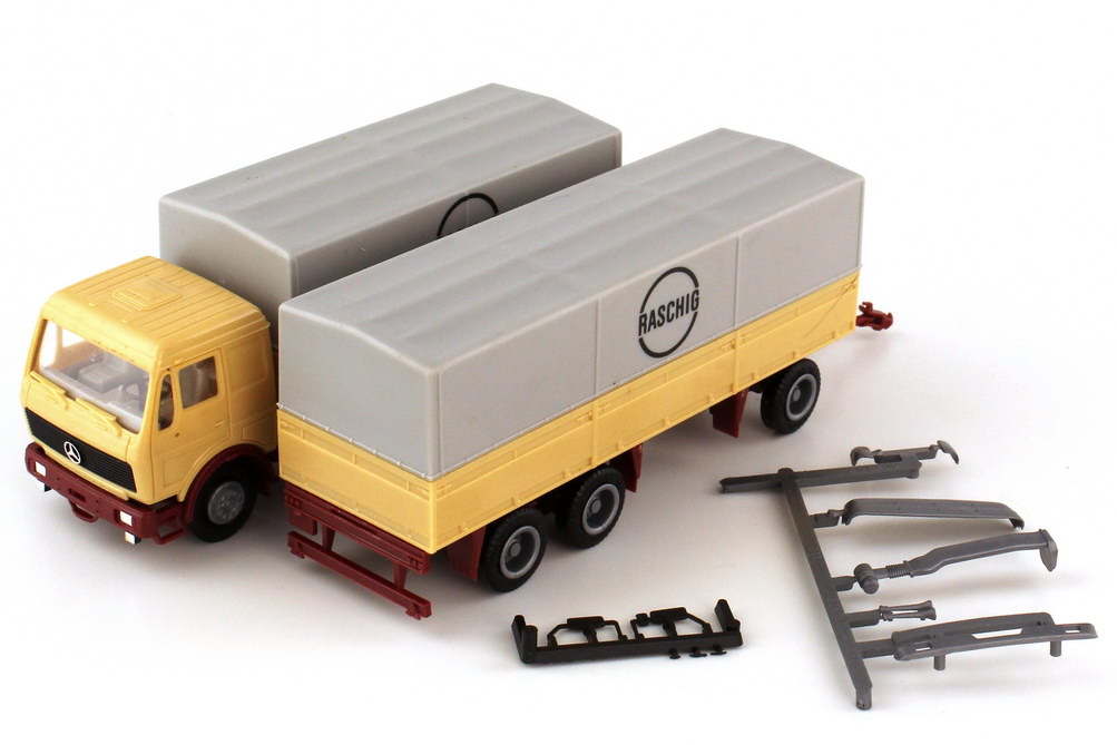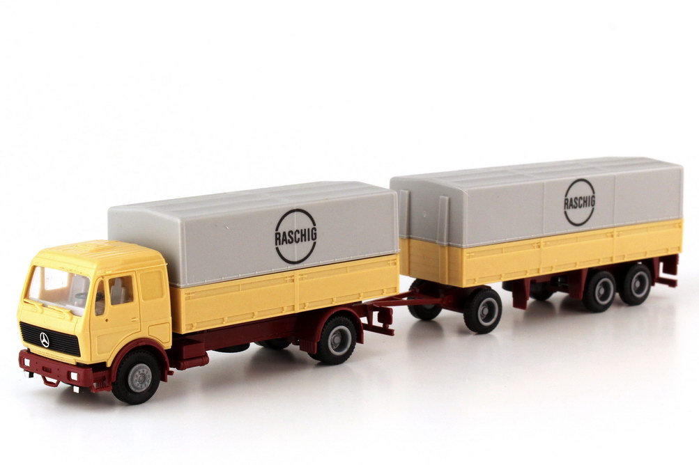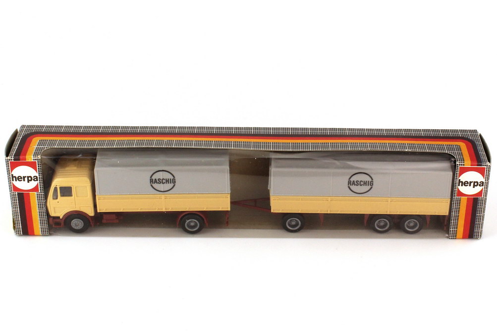 herpa-Modellauto, M 1:87, Mercedes-Benz NG Pritsche/Plane-Hängerzug 2/3 "Raschig"