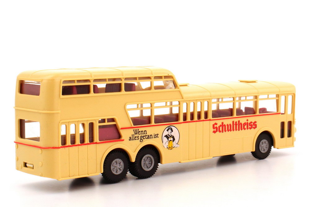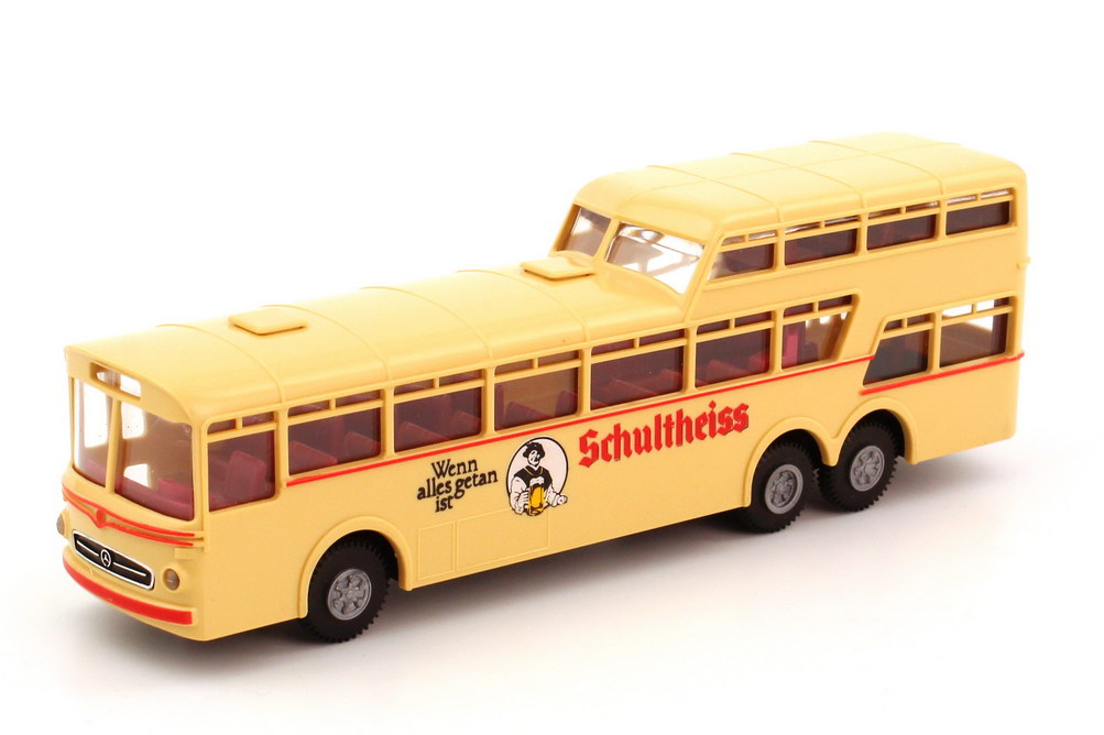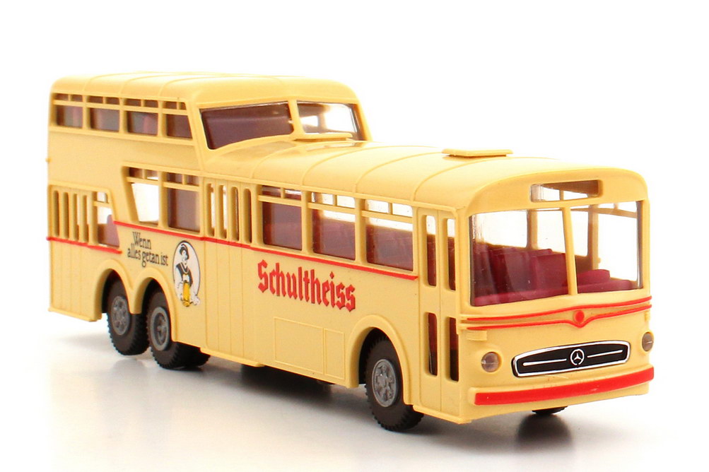 Brekina-Modellauto, M 1:87, Mercedes-Benz O 317 Anderthalbdecker beige "Schultheiss - Wenn alles getan ist"