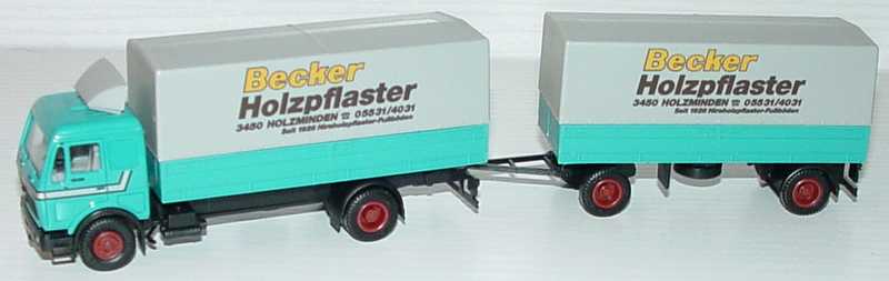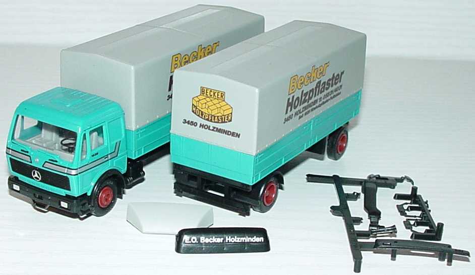 herpa-Modellauto, M 1:87, Mercedes-Benz Planenhängerzug 2/2 "Becker Holzpflaster"