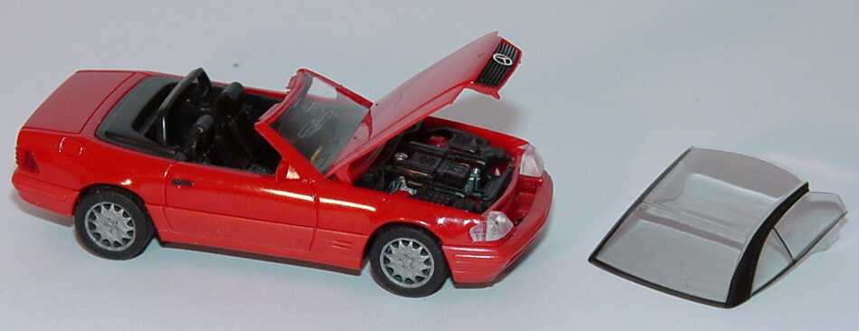 herpa-Modellauto, M 1:87, Mercedes-Benz SL 500 (R129) rot, Hardtop transparent