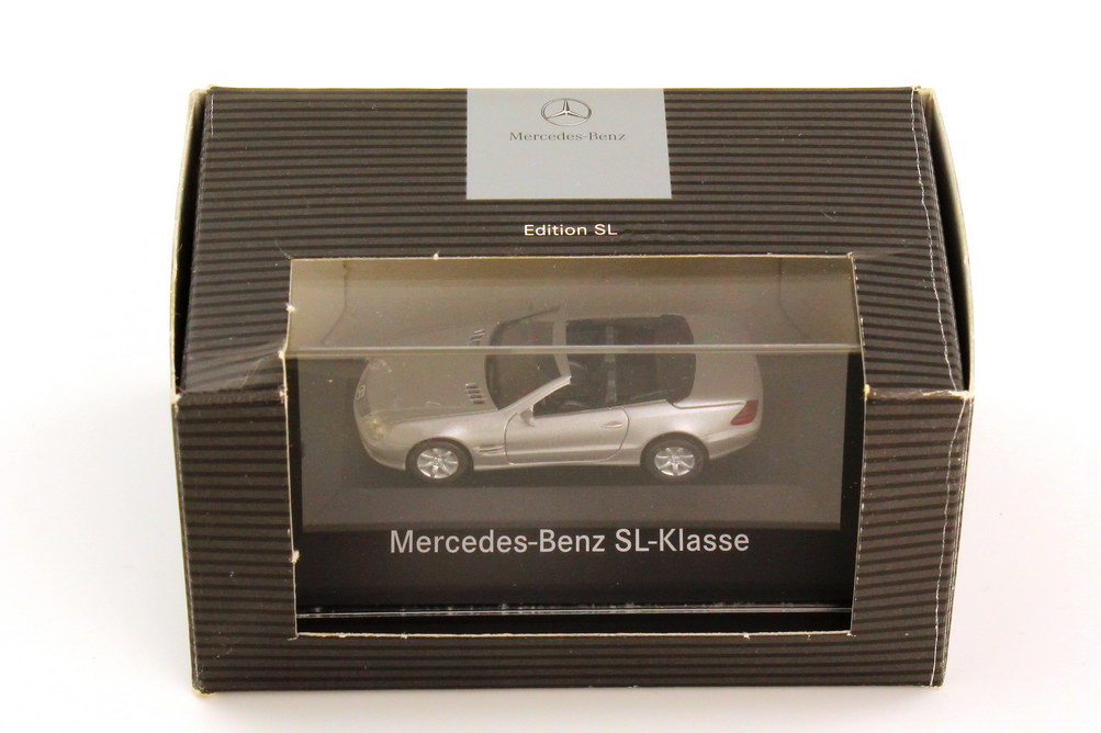 herpa-Modellauto in Minivitrine, M 1:87, Mercedes-Benz SL 500 (R230) brillantsilber-met. (Mercedes-Werbemodell)