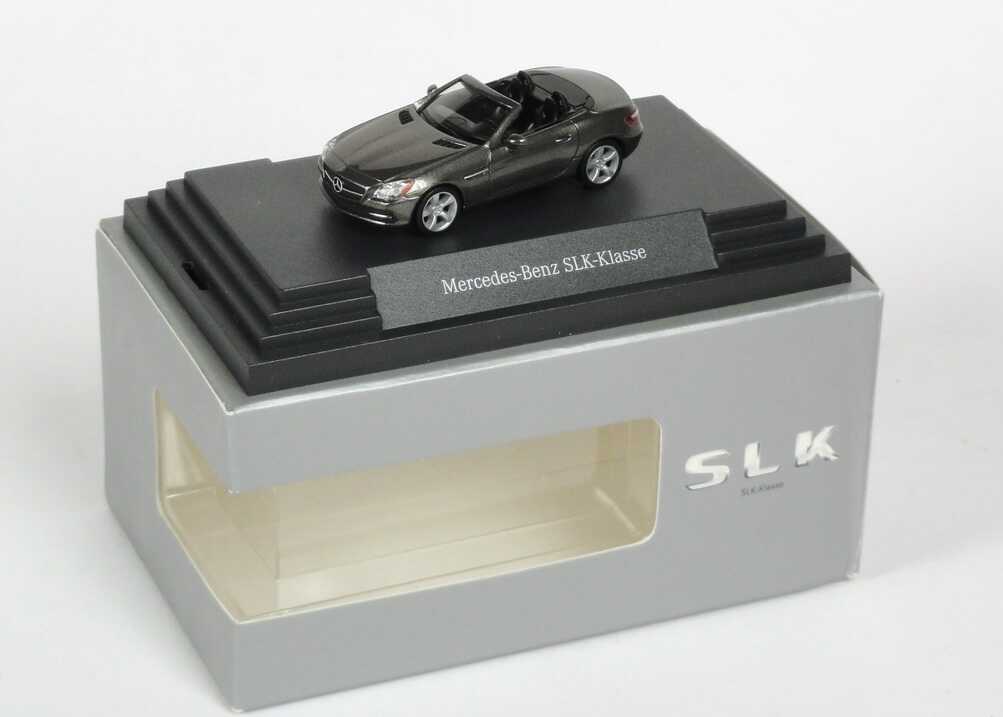 herpa-Modellauto in Minivitrine, M 1:87, Mercedes-Benz SLK (R172) indiumgrau-met. (Mercedes-Werbemodell)