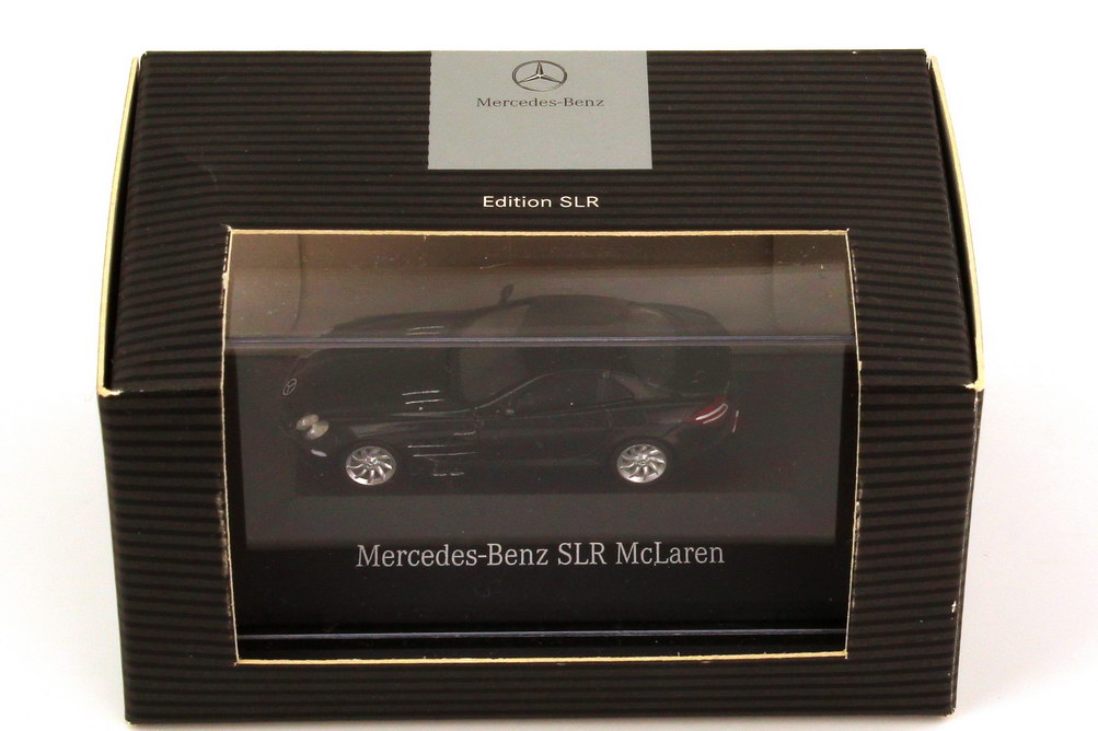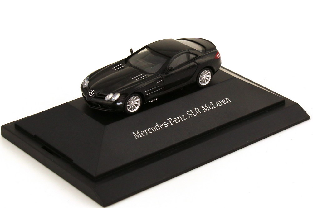 herpa-Modellauto in Minivitrine, M 1:87, Mercedes-Benz SLR McLaren (C199) crystal-galaxit-black (Mercedes-Werbemodell)