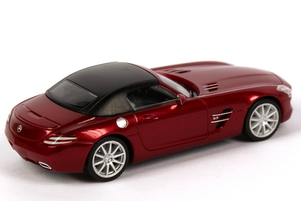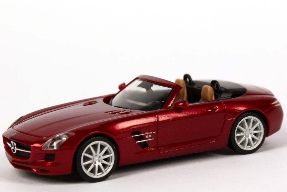 Foto 1:87 Mercedes-Benz SLS AMG Roadster (R197) le-mans-rot-met. Werbemodell herpa B66960034