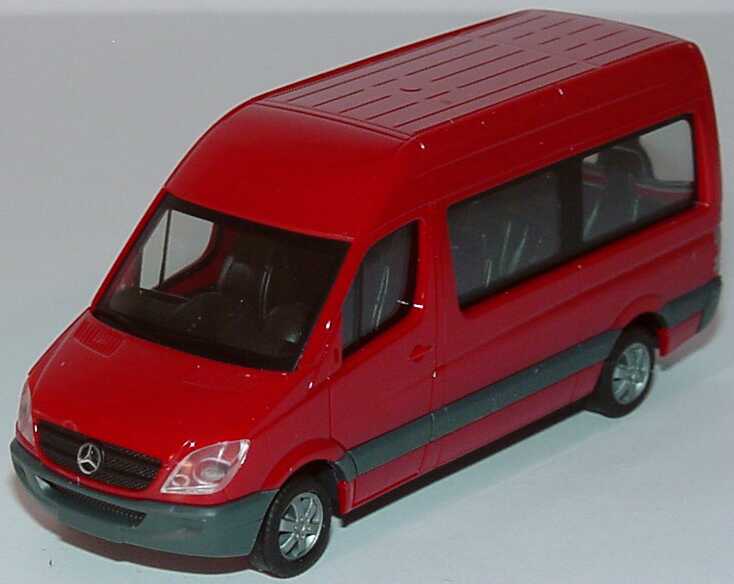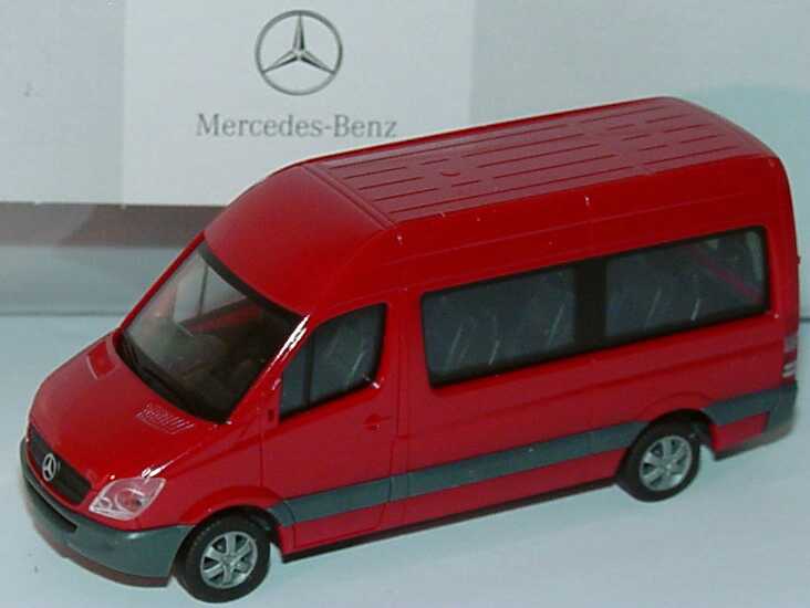 herpa-Modellauto, M 1:87, Mercedes-Benz Sprinter 2006 Bus Hochdach hibiskusrot (Mercedes-Werbemodell)