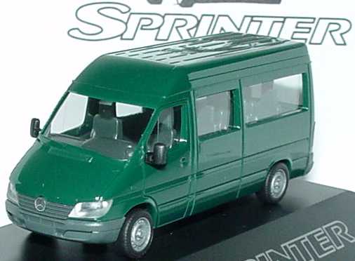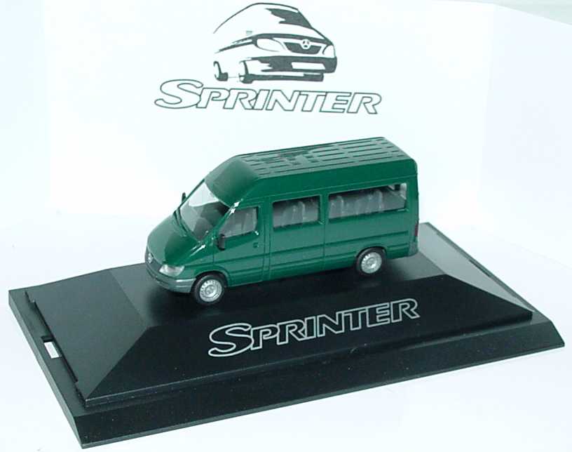 herpa-Modellauto in Minivitrine, M 1:87, Mercedes-Benz Sprinter Facelift (T1N MOPF) Bus Hochdach dunkelgrün (Mercedes-Werbemodell)