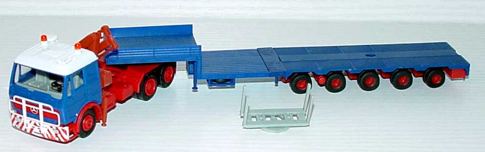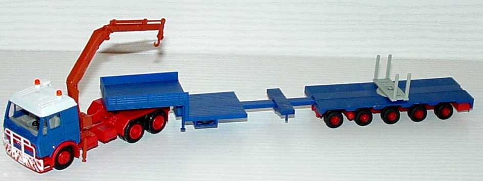 1:87 Mercedes-Benz Tieflade-Szg mit Ladekran 3/5 blau/rot herpa