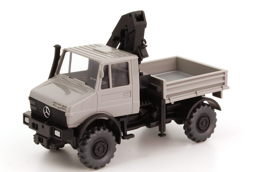 1:87 Mercedes-Benz Unimog U1800 mit Ladekran grau Wiking 64703