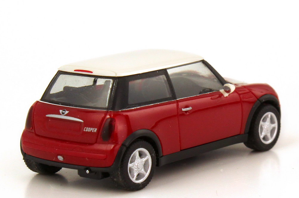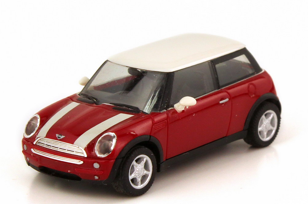 1:87 New Mini Cooper (R50) solarrot mit weißen Streifen, Dach weiß herpa 80410139356