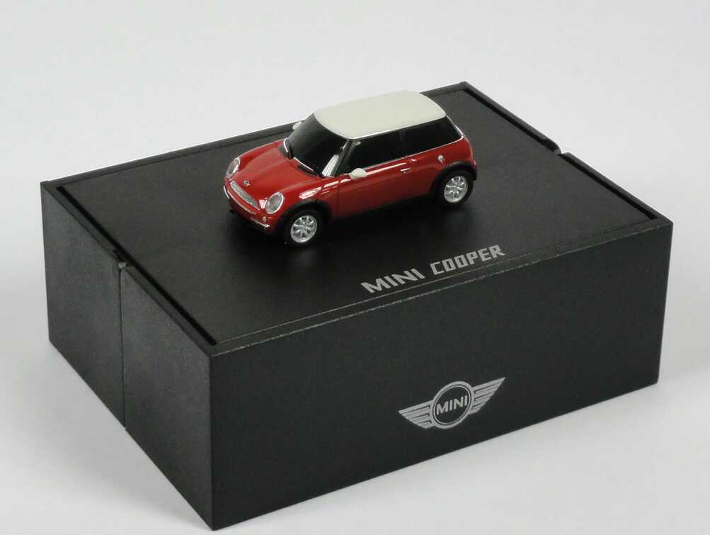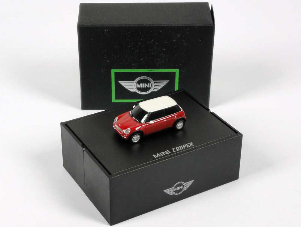 herpa-Modell in BMW-Klappbox, M 1:87, New Mini Cooper rot/weiß (Vorserie) (Mini-Werbemodell)