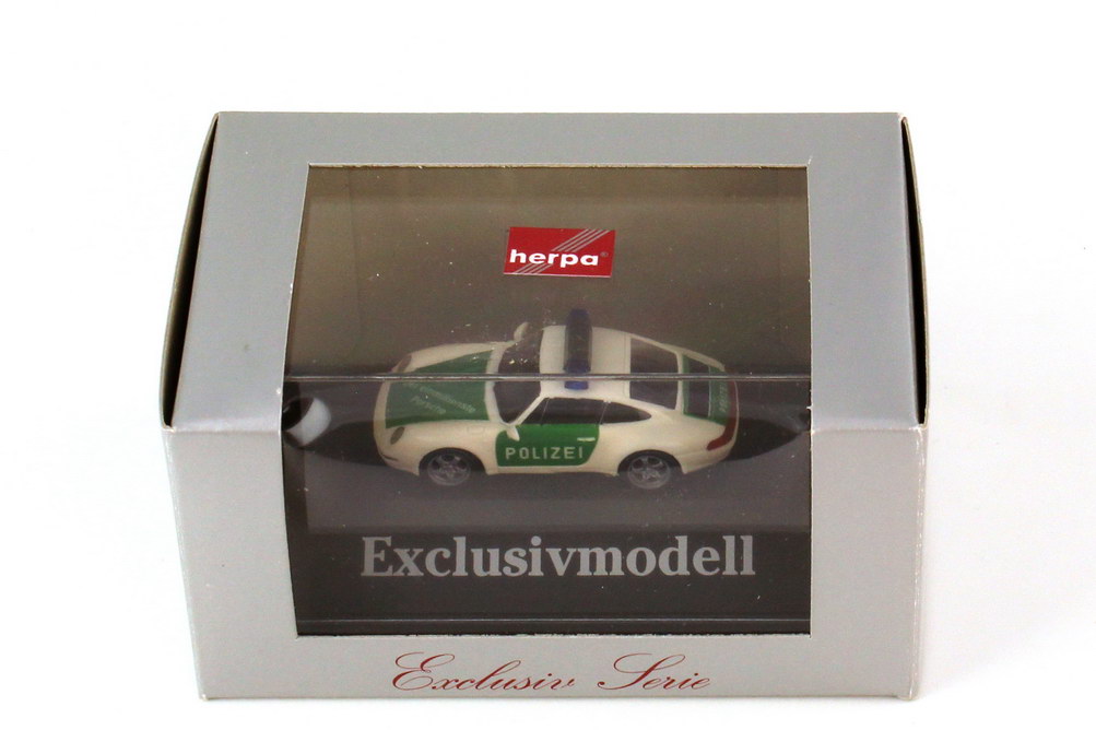 herpa-Modellauto in Minivitrine, M 1:87, Porsche 911 Carrera (993) Polizei "Der einmillionste Porsche"