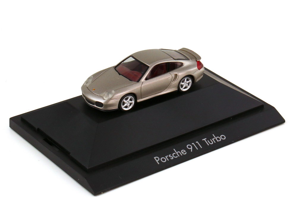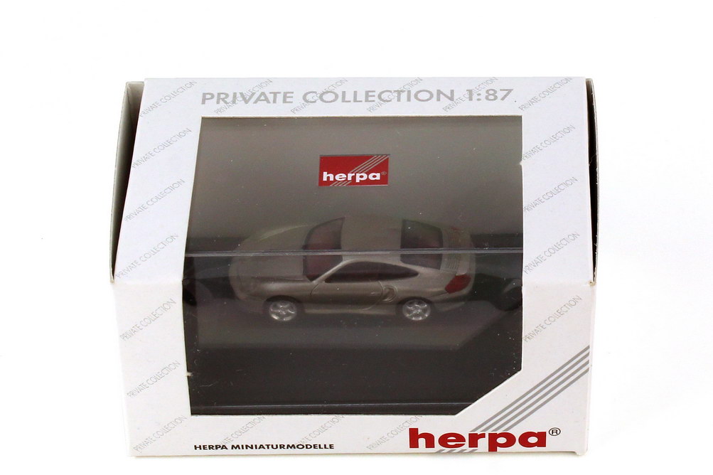 herpa-Modellauto in Minivitrine, M 1:87, Porsche 911 turbo (996) paladio-mirage-met.