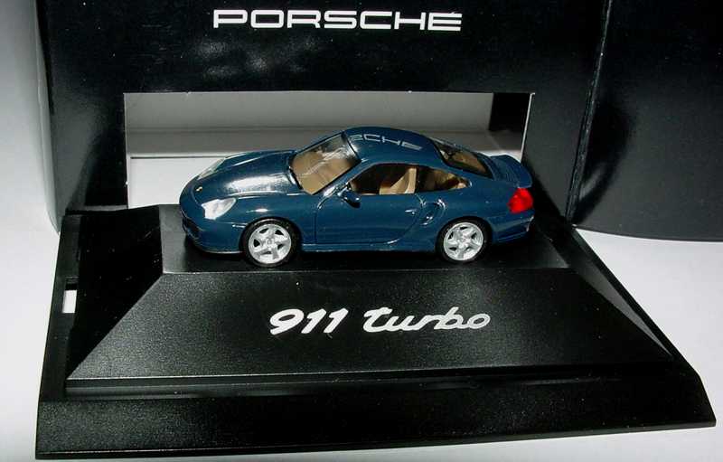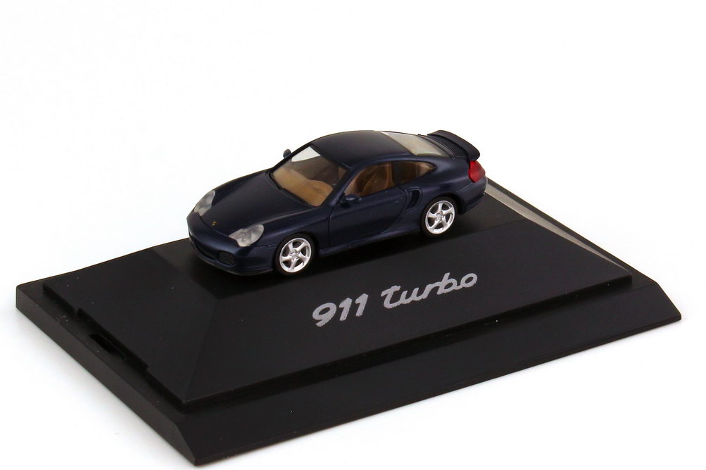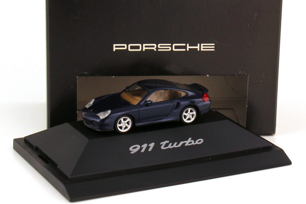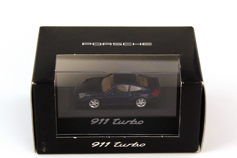 herpa-Modellauto in Minivitrine, M 1:87, Porsche 911 turbo (996) lapisblau-met. (Porsche-Werbemodell)