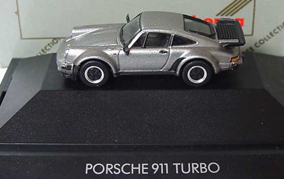 herpa-Modellauto in Minivitrine, M 1:87, Porsche 911 turbo (Typ 930) felsgrau-met.