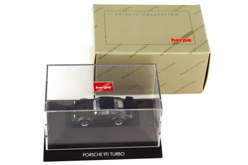 herpa-Modellauto in Minivitrine, M 1:87, Porsche 911 turbo (Typ 930) nachtblau-met.