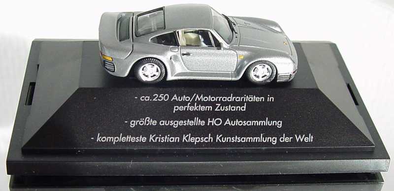 herpa-Modellauto in Minivitrine, M 1:87, Porsche 959 graumet. "Streicher Automobile"