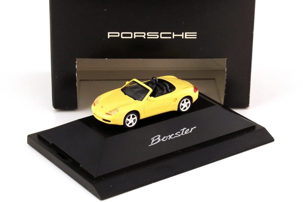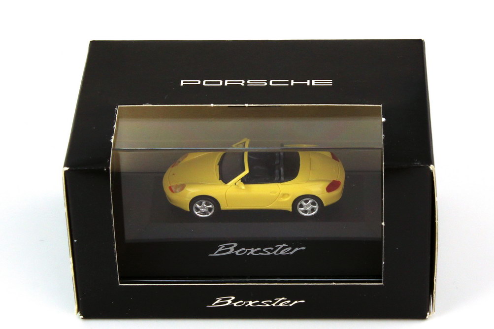 herpa-Modellauto in Minivitrine, M 1:87, Porsche Boxster (986) pastellgelb (Porsche-Werbemodell)