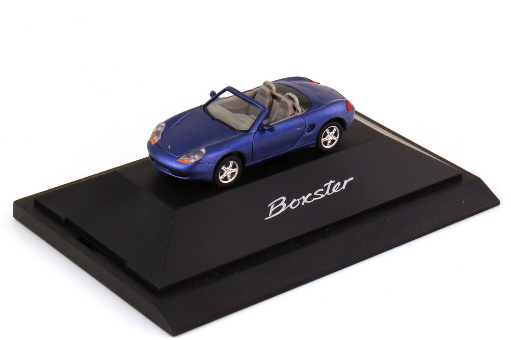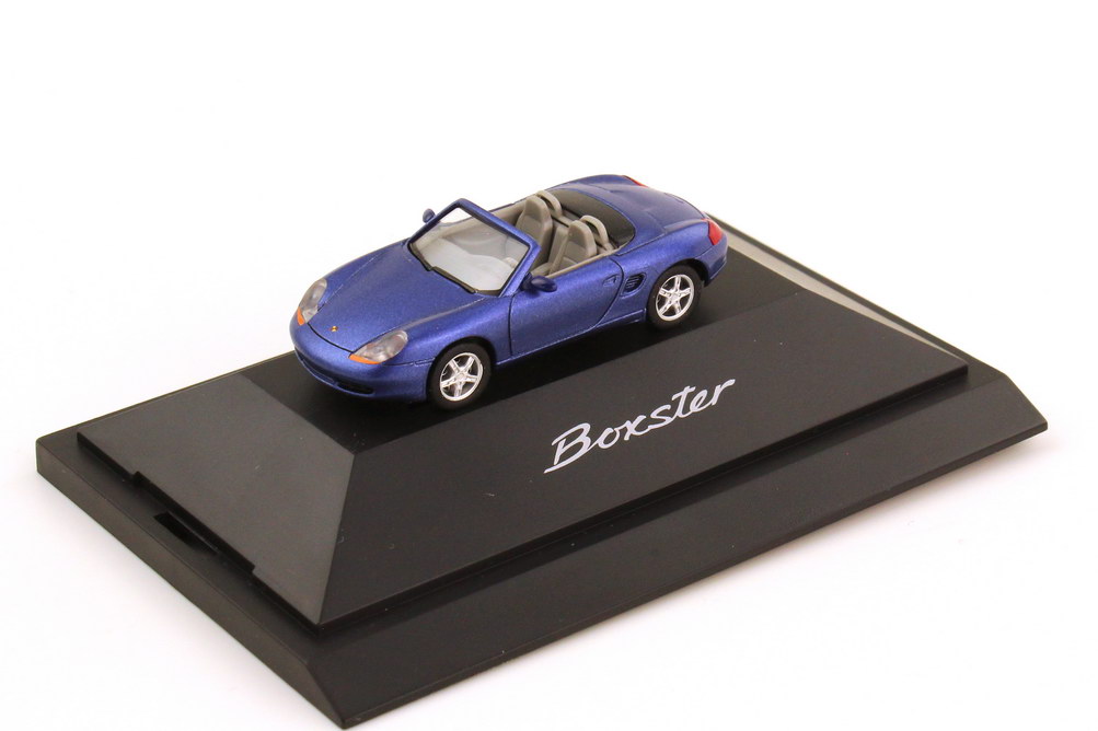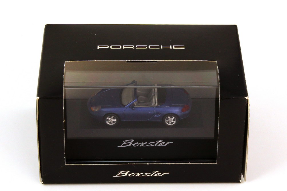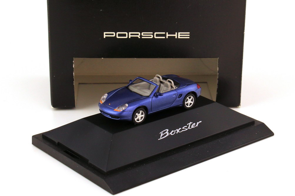 herpa-Modellauto in Minivitrine, M 1:87, Porsche Boxster (986) zenitblau-met. (Porsche-Werbemodell)