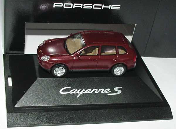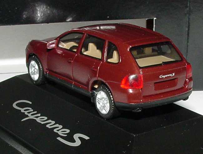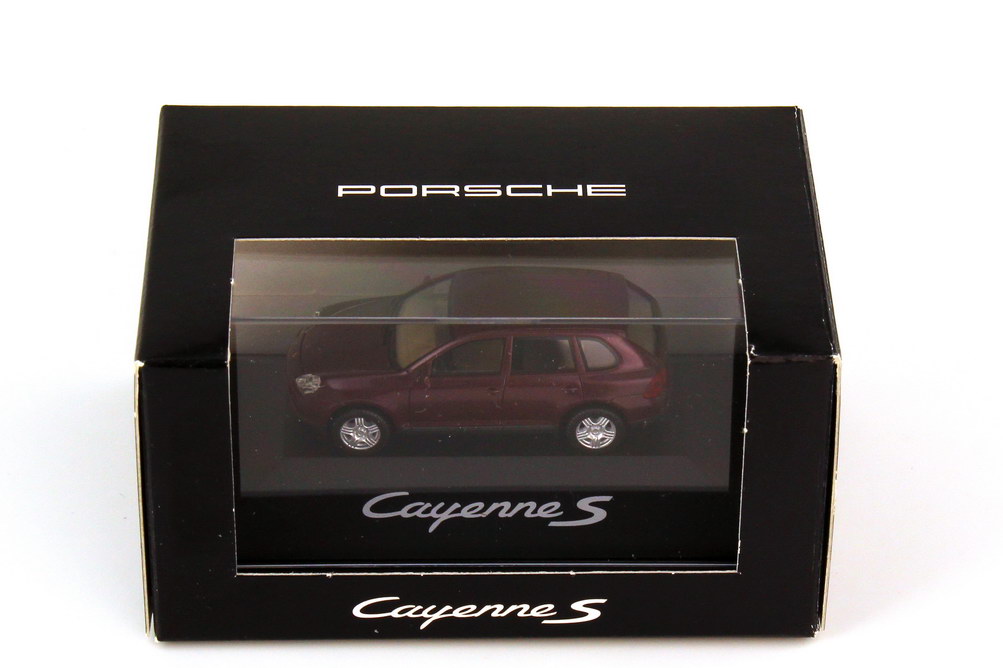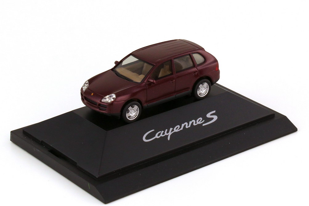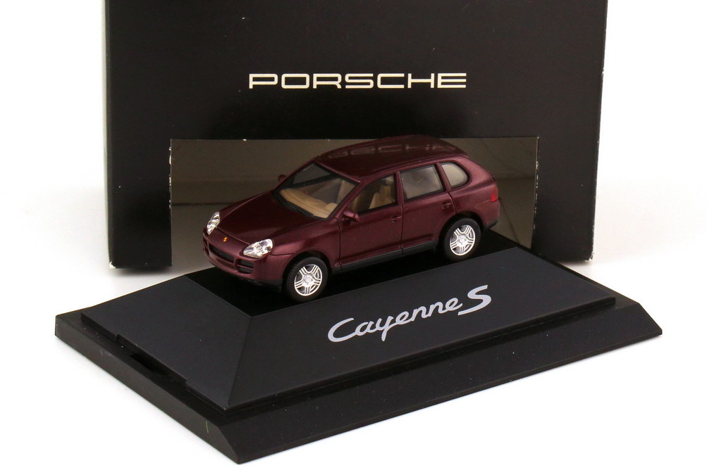 herpa-Modellauto in Minivitrine, M 1:87, Porsche Cayenne S (9PA) carmonarot-met. (Porsche-Werbemodell)