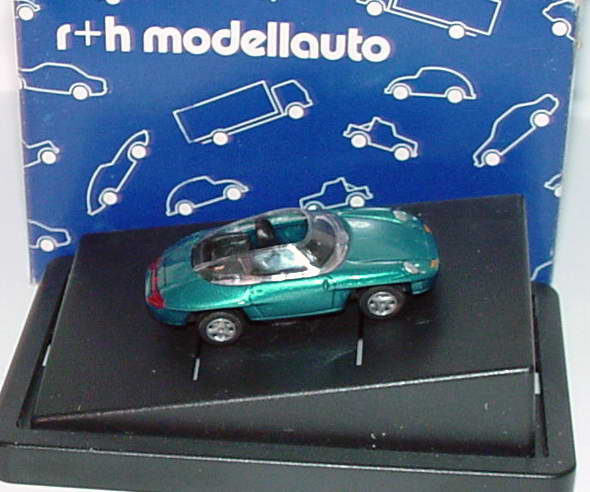r + h modellauto-Modellauto in Minivitrine, M 1:87, Porsche Panamericana lagunengrünmet.