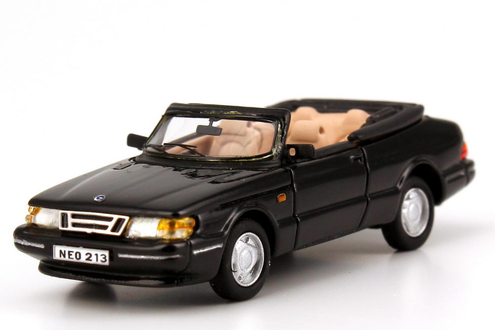 NEO Scale Models-Modellauto in Minivitrine, M 1:87, Saab 900 Turbo Cabrio schwarz