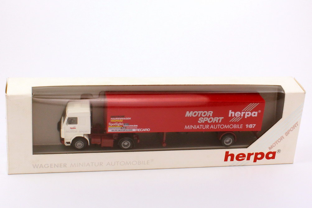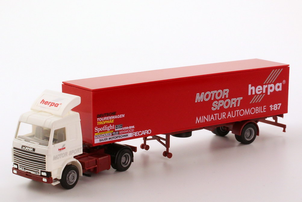 herpa-Modellauto, M 1:87, Scania R113 Topline Renntransporter Koffersattelzug 2/1 "herpa Motorsport"