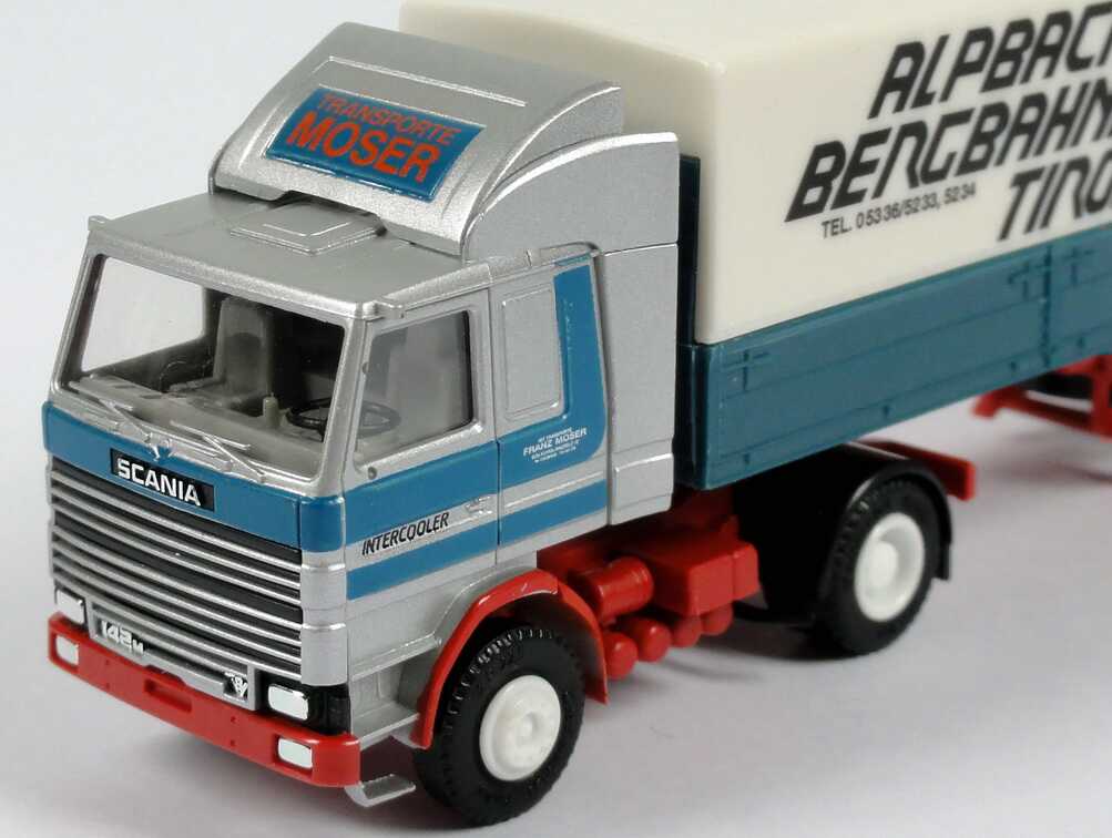 Albedo-Modellauto, M 1:87, Scania R142 Fv Pritsche/Plane-Sattelzug 2/3 "Franz Moser, Alpbacher Bergbahnen Tirol"