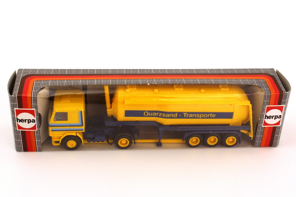 herpa-Modellauto, M 1:87, Scania R142 Kippsilo-Sattelzug 2/3 "Quarzsand-Transporte"