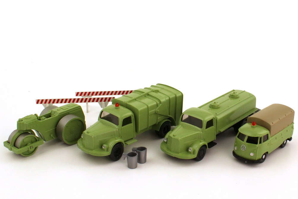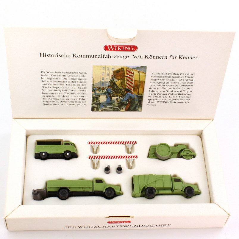 Foto 1:87 Set-Packung Die Wirtschaftswunderjahre IV - auf deutschen Bauhöfen... (4 Kommunalfahrzeuge + Zubehör) Wiking 99055