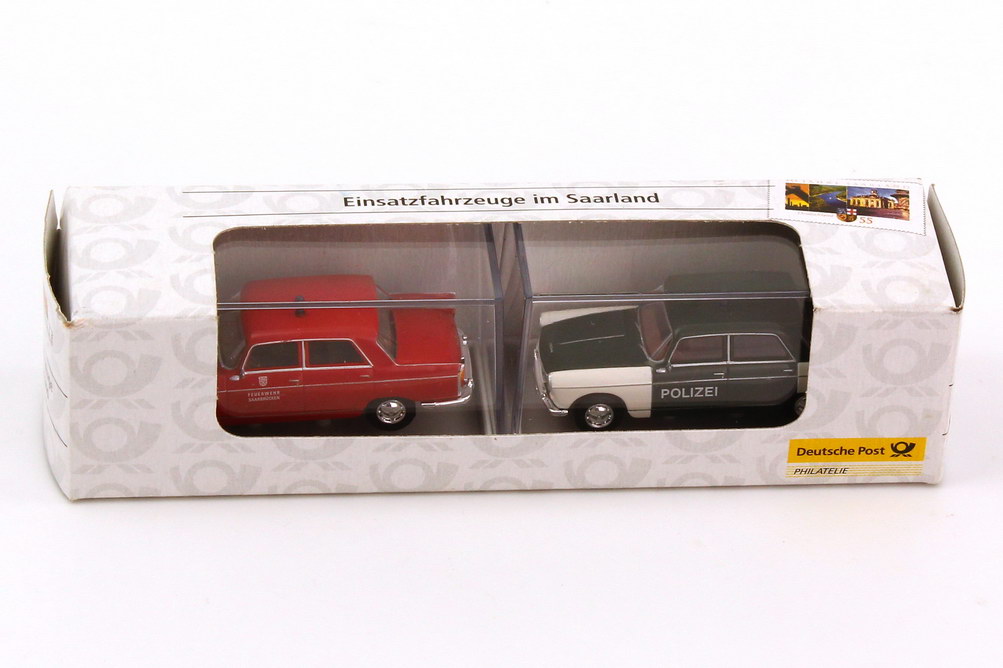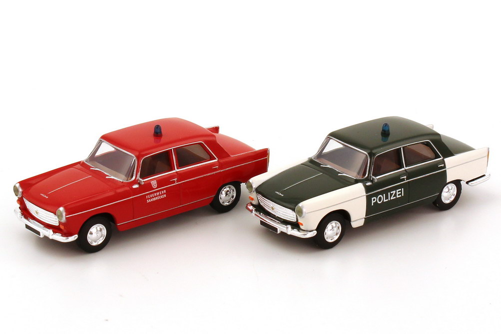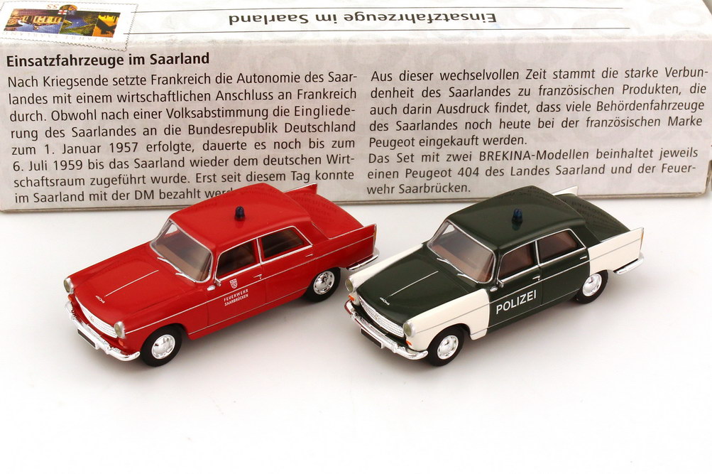 1:87 Setpackung "Einsatzfahrzeuge im Saarland" (Peugeot 404 Polizei + Feuerwehr Saarbrücken) Brekina 010567