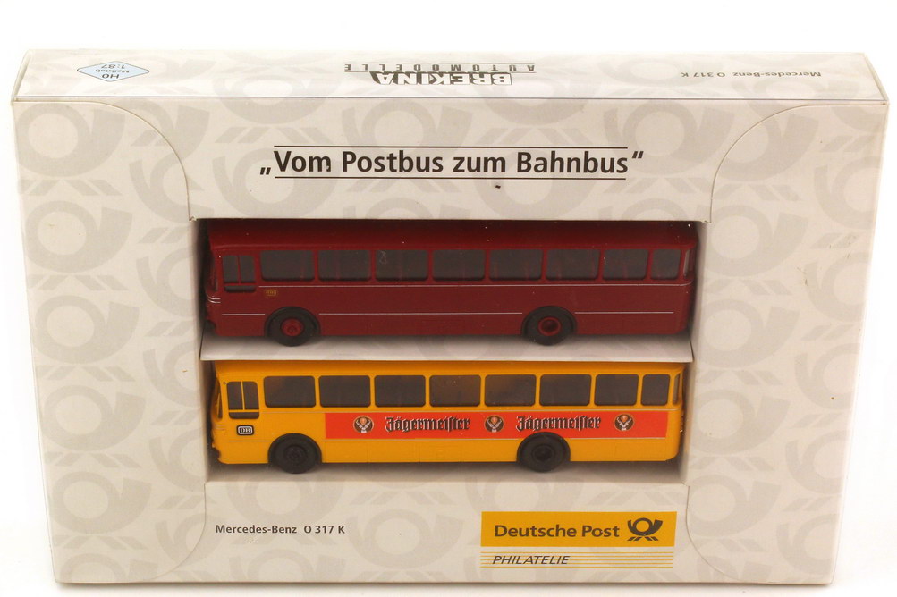 1:87 Setpackung Vom Postbus zum Bahnbus 2x Mercedes-Benz O 317 K - Brekina 006764