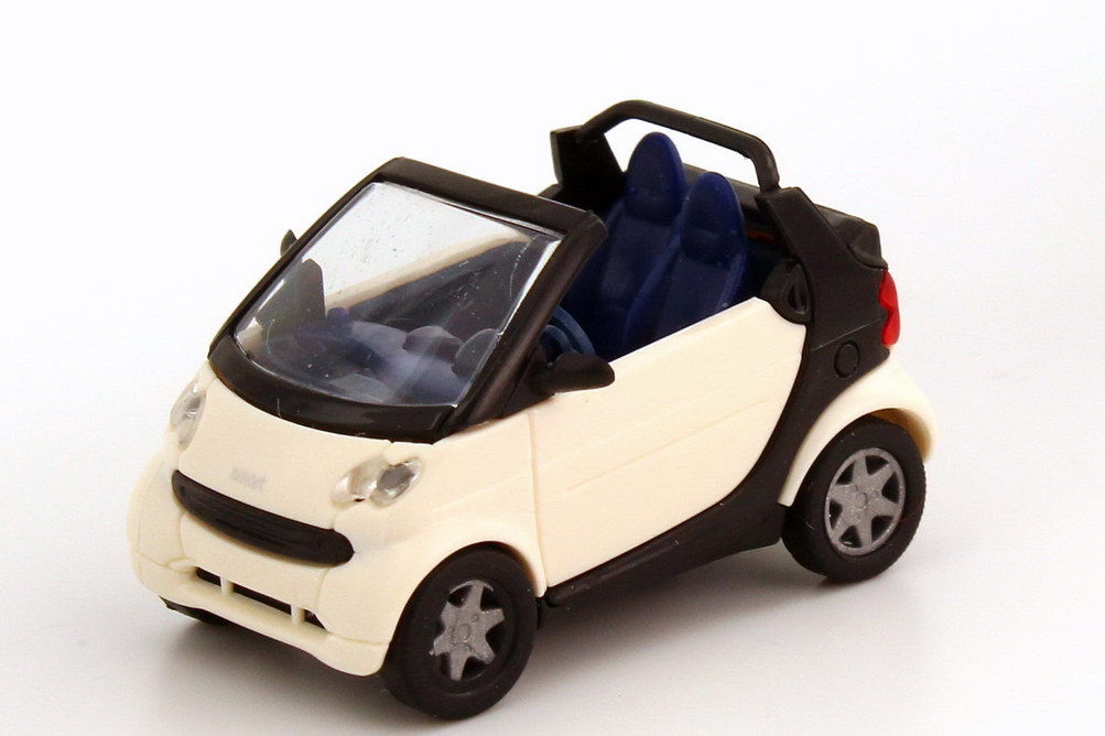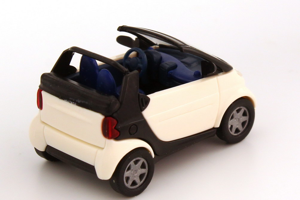 Busch-Modellauto, M 1:87, Smart Cabrio weiß/schwarz, Sitze blau