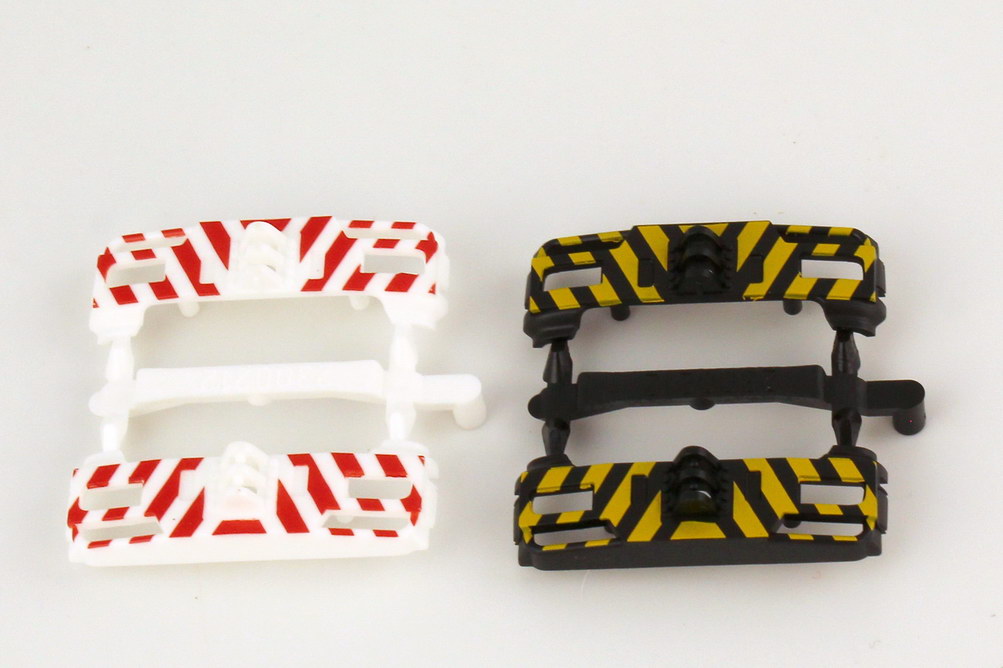 herpa-Modellauto, M 1:87, Stoßstange mit Registerkupplung für Mercedes Actros SLT (2x weiß/rot + 2x schwarz/gelb)
