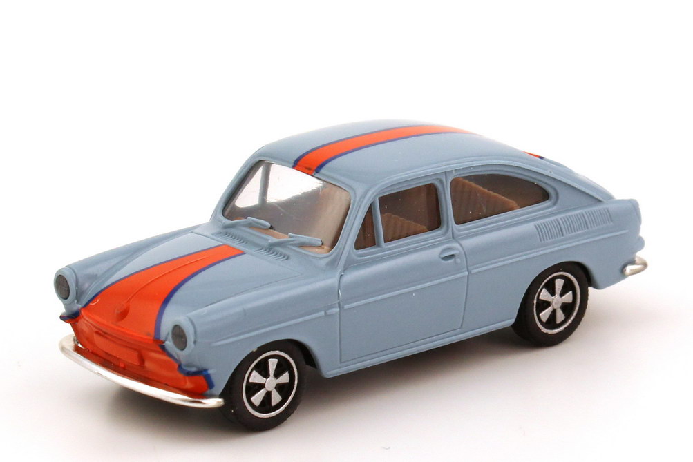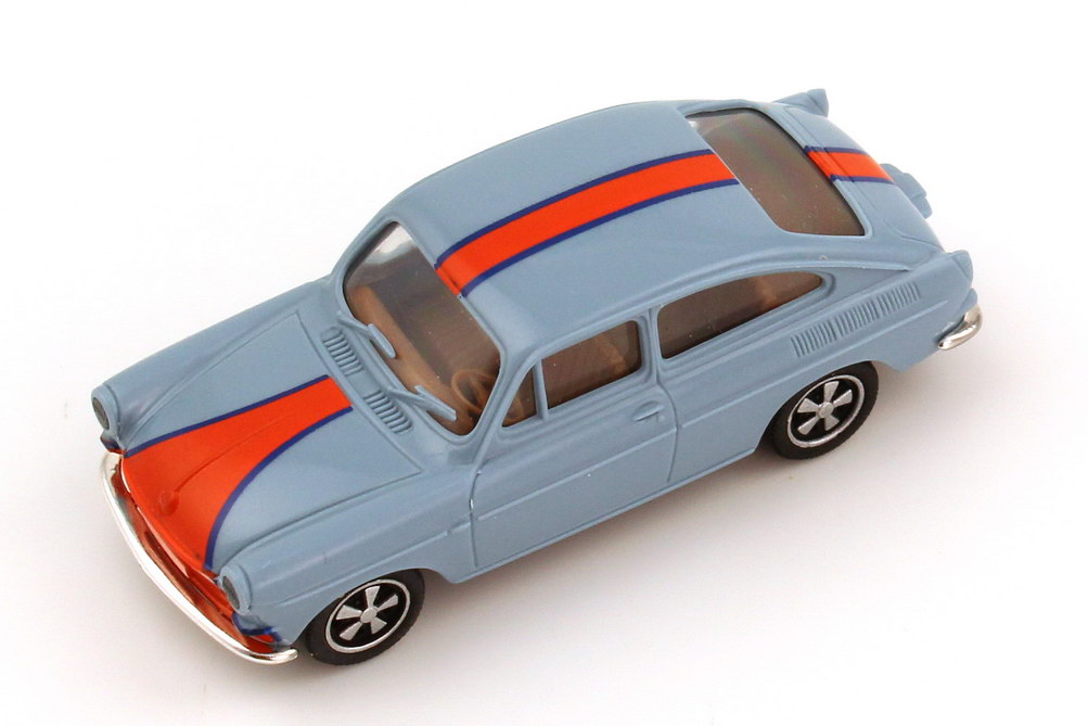 1:87 VW 1600 TL Fließheck gulf-custom gulf-blau / orange mit Fuchs-Felgen Brekina 26206