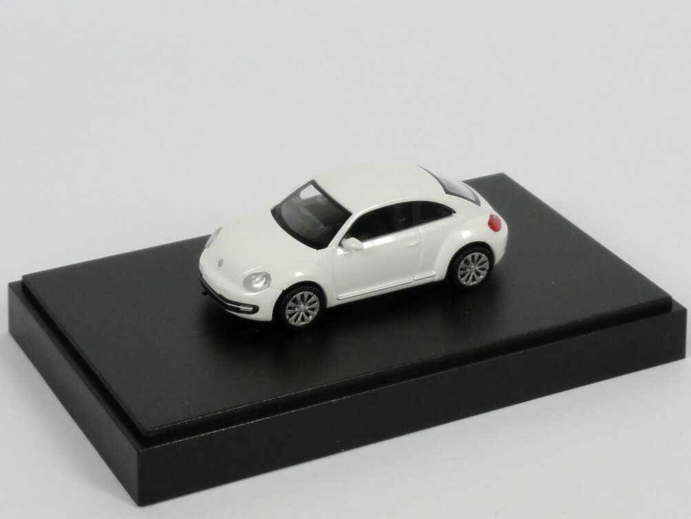 Wiking-Modellauto in Minivitrine, M 1:87, VW Beetle (2011) oryxweiß-perlmuteffect (VW-Werbemodell)