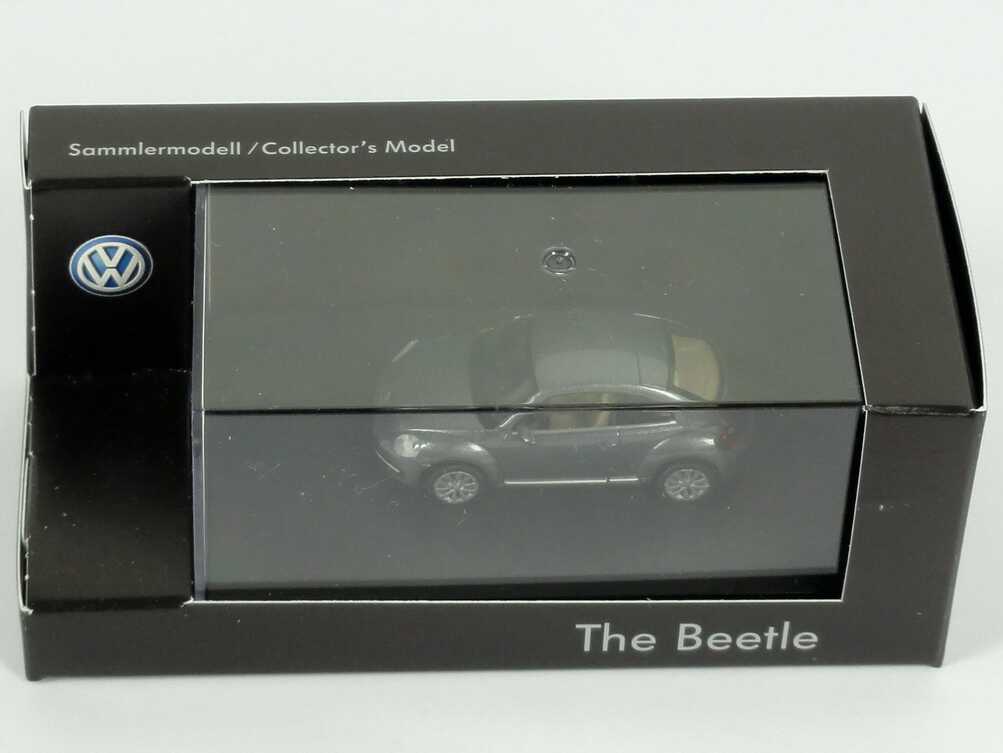 Wiking-Modellauto in Minivitrine, M 1:87, VW Beetle (2011) platinum-grey-met. (VW-Werbemodell)