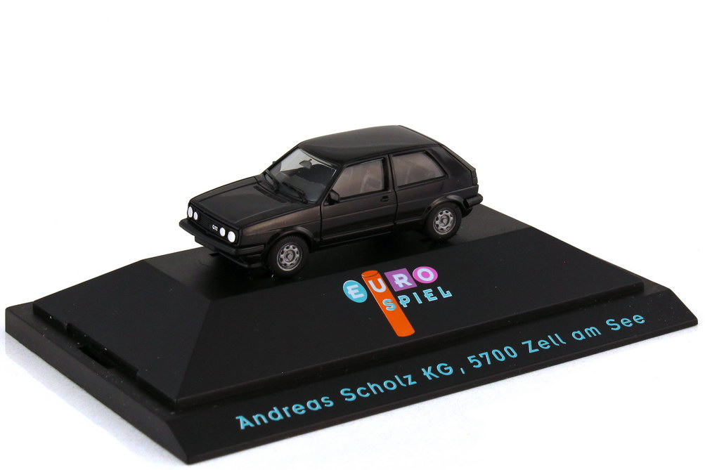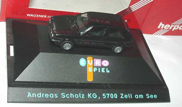 herpa-Modellauto in Minivitrine, M 1:87, VW Golf II GTI facelift 2türig schwarz "Euro Spiel, Andreas Scholz KG, 5700 Zell am See" Österreich-Sondermodell