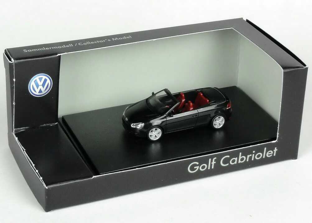 herpa-Modellauto in Minivitrine, M 1:87, VW Golf VI Cabrio deepblack-perleffekt (Volkswagen-Werbemodell)