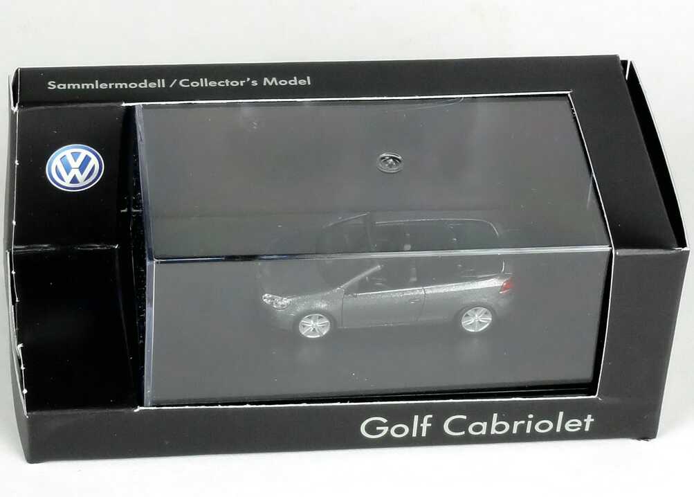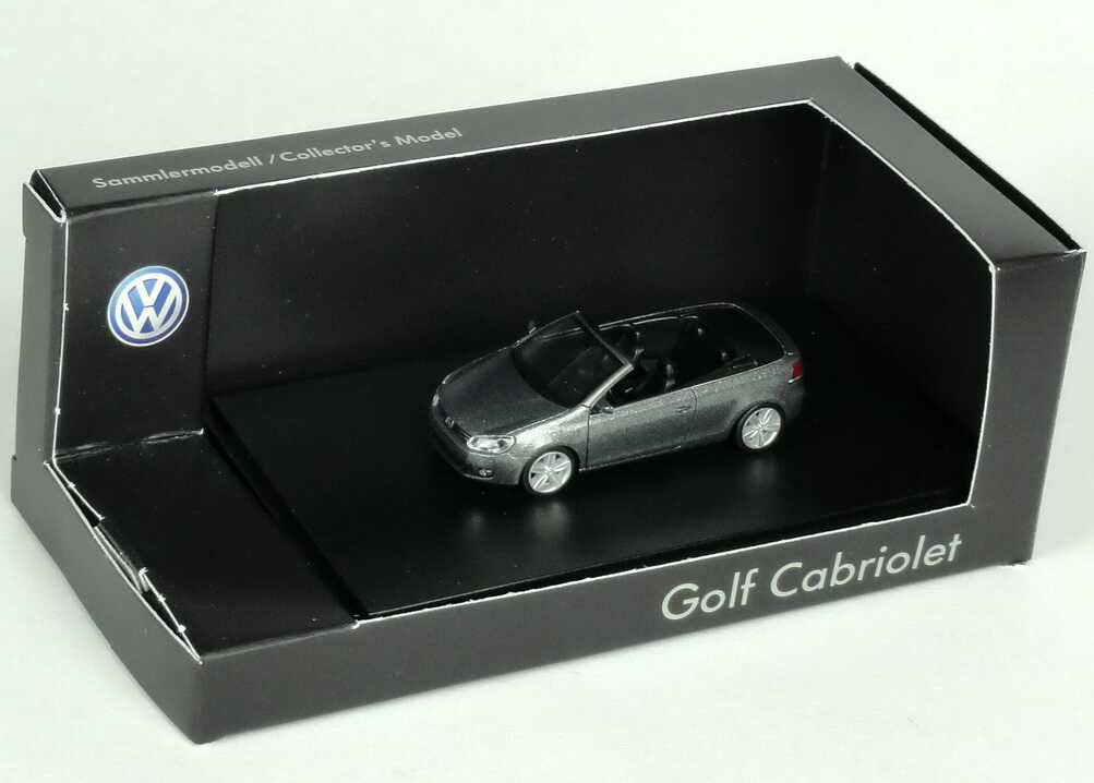 herpa-Modellauto in Minivitrine, M 1:87, VW Golf VI Cabrio unitedgrey-met. (Volkswagen-Werbemodell)