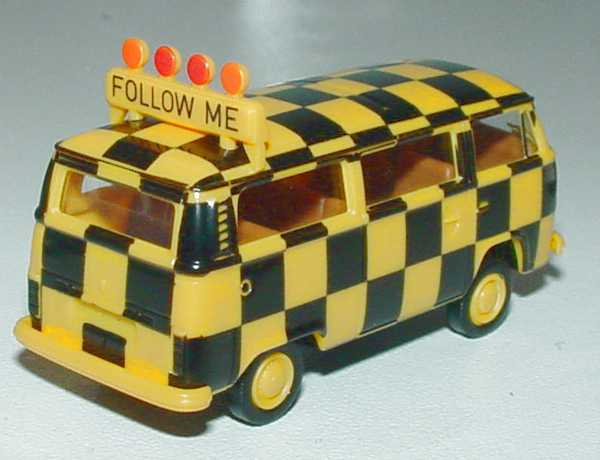 Brekina-Modellauto, M 1:87, VW T2 (T2b) Bus mit Dachschild "Follow me"