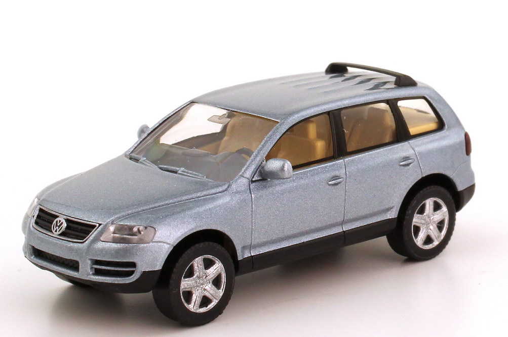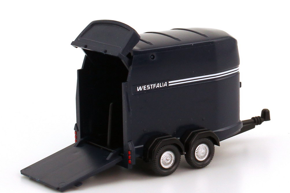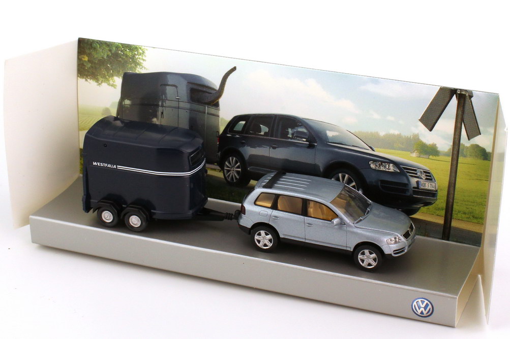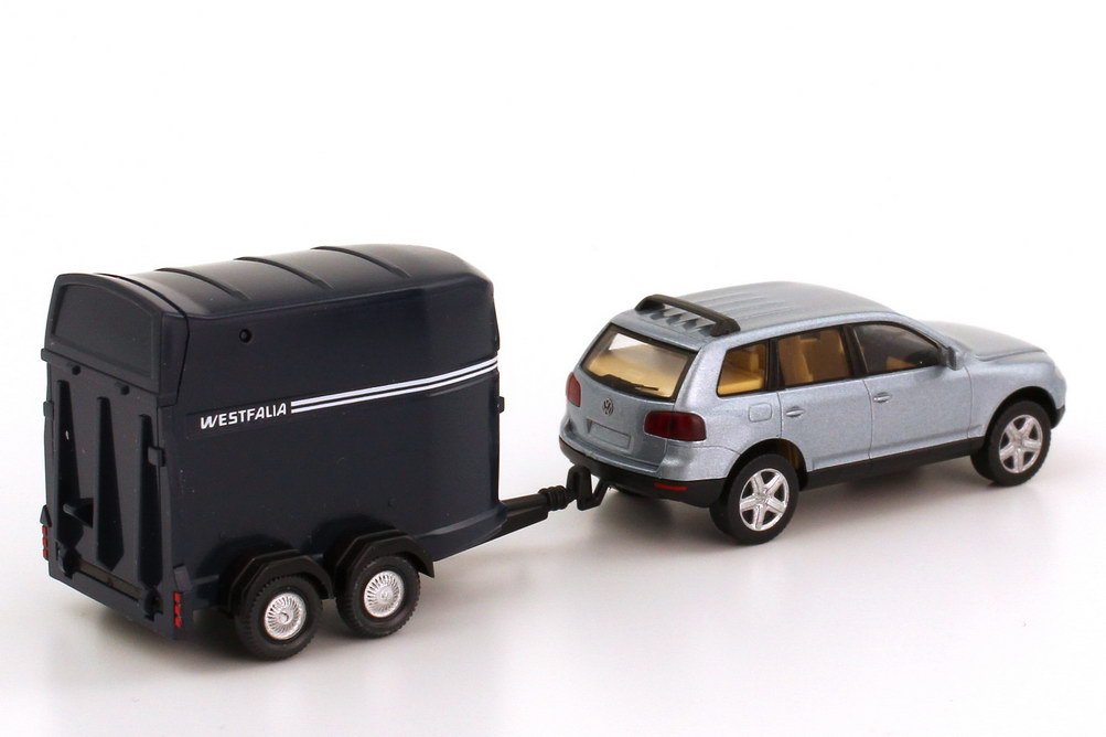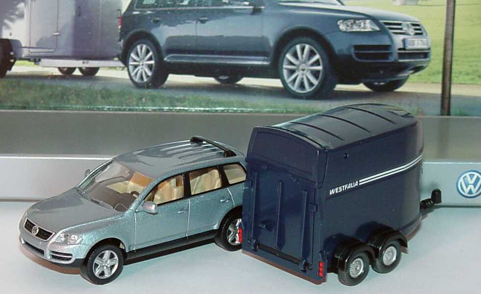 1:87 VW Touareg silberblau-met. mit Westfalia Pferdetransportanhänger Werbemodell Wiking 7L0099301B