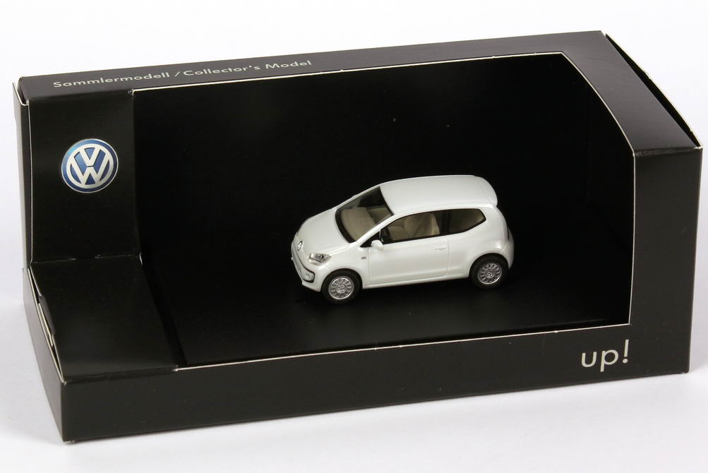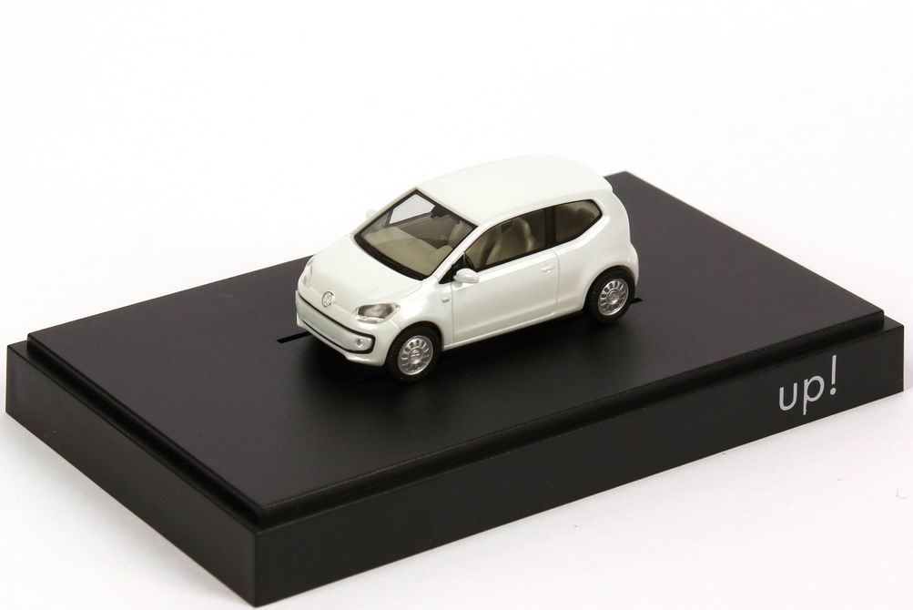 herpa-Modellauto in Minivitrine, M 1:87, VW Up! oryx-weiß-perlmutteffekt (VW-Werbemodell)