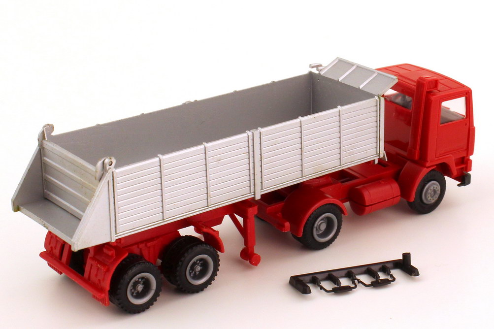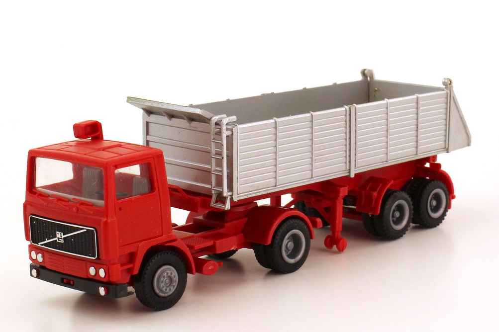 herpa-Modellauto, M 1:87, Volvo F10 (kurze Kabine) Hinterkipper-Sattelzug 2/3 rot/silber